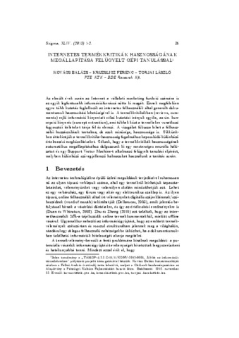 Kovács, Balázs and Kruzslicz, Ferenc and Torjai, László (2013) Internetes termékkritikák hasznosságának megállapítása felügyelt gépi tanulással. SZIGMA, 44 (1-2). pp. 35-63. ISSN 0039-8128