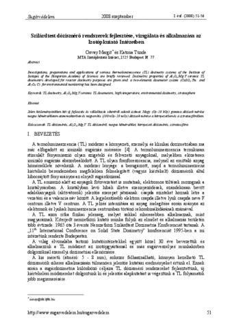 Osvay, Margit and Katona, Tünde (2008) Szilárdtest dózismérő rendszerek fejlesztése, vizsgálata és alkalmazása az Izotópkutató Intézetben. SUGÁRVÉDELEM, 1 (1). pp. 51-56. ISSN 2060-2391