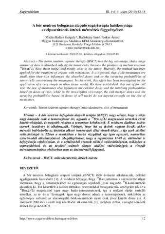 Madas, Balázs Gergely and Balásházy, Imre and Farkas, Árpád (2010) A bór neutron befogásán alapuló sugárterápia hatékonysága az elpusztítandó áttétek méretének függvényében. SUGÁRVÉDELEM, 3 (1). pp. 12-18. ISSN 2060-2391