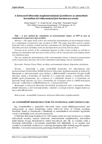 Deme, Sándor and C. Szabó, István and Láng, Edit and Pázmándi, Tamás (2011) A környezeti kibocsátás meghatározásának új módszere az atomerőmű hermetikus téri túlnyomással járó üzemzavara esetén. SUGÁRVÉDELEM, 4 (1). pp. 1-14. ISSN 2060-2391