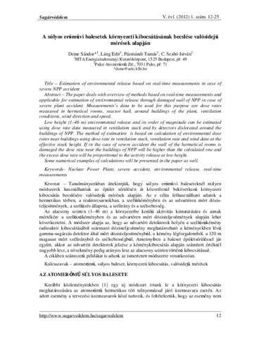 Deme, Sándor and Láng, Edit and Pázmándi, Tamás and C. Szabó, István (2012) A súlyos erőművi balesetek környezeti kibocsátásának becslése valósidejű mérések alapján. SUGÁRVÉDELEM, 5 (1). pp. 12-25. ISSN 2060-2391