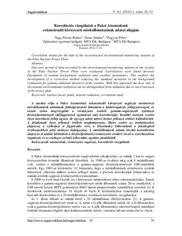 Nagy, Ferenc Balázs and Deme, Sándor and Zagyvai, Péter (2012) Korrelációs vizsgálatok a Paksi Atomerőmű rekonstruált környezeti mérőállomásainak adatai alapján. SUGÁRVÉDELEM, 5 (1). pp. 26-33. ISSN 2060-2391