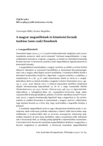 Vecsernyés, Ildikó and Kovács, Magdolna (2022) A magyar megszólítások és köszönési formák tanítása (nem csak) finneknek = Вивчення угорських форм звертання та вітання для фінів (і не тільки) = Teaching Hungarian address forms and greetings to (but not only) Finnish speakers. ACTA ACADEMIAE BEREGSASIENSIS, PHILOLOGICA, 1 (1). pp. 61-84. ISSN 27866718