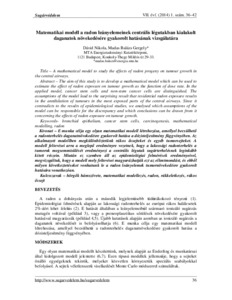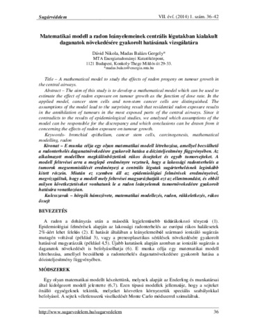 Dávid, Nikola and Madas, Balázs Gergely (2014) Matematikai modell a radon leányelemeinek centrális légutakban kialakult daganatok növekedésére gyakorolt hatásának vizsgálatára. SUGÁRVÉDELEM, 7 (1). pp. 36-42. ISSN 2060-2391