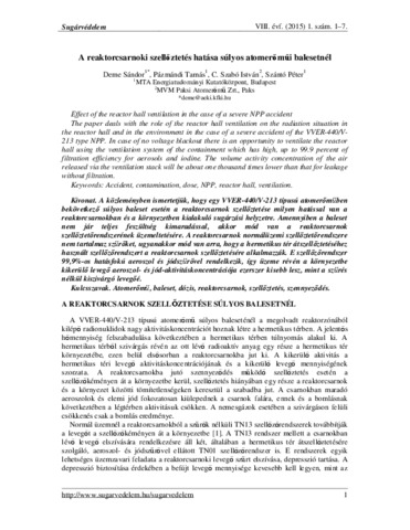 Deme, Sándor and Pázmándi, Tamás and C. Szabó, István and Szántó, Péter (2015) A reaktorcsarnoki szellőztetés hatása súlyos atomerőműi balesetnél. SUGÁRVÉDELEM, 8 (1). pp. 1-7. ISSN 2060-2391