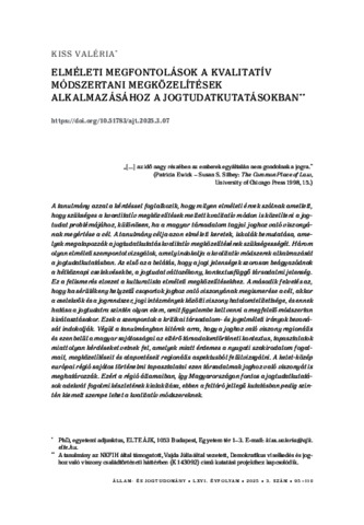 Kiss, Valéria (2025) Elméleti megfontolások a kvalitatív módszertani megközelítések alkalmazásához a jogtudatkutatásokban. ÁLLAM- ÉS JOGTUDOMÁNY, 66 (3). pp. 95-110. ISSN 0002-564X