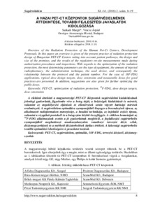 Sarkadi, Margit and Vincze, Árpád (2018) A hazai PET-CT központok sugárvédelmének áttekintése, további fejlesztési javaslatok kidolgozása. SUGÁRVÉDELEM, 11 (2). pp. 8-19. ISSN 2060-2391