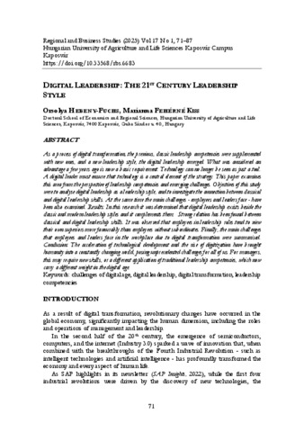 Hebeny-Fuchs, Orsolya and Fehérné Kiss, Marianna (2025) Digital Leadership: The 21st Century Leadership Style. REGIONAL AND BUSINESS STUDIES, 17 (1). pp. 71-87. ISSN 2061-2311