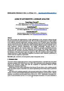 This study examines the implementation of Agile methodologies in the automotive industry through domain analysis based on pilot questionnaire data. The research investigates patterns in Agile adoption across different automotive departments, analyzing responses from 44 industry experts representing various organizational roles. The study aims to identify potential approaches for enhancing operational efficiency and cross-functional collaboration while considering industry-specific constraints such as safety regulations, hardware dependencies, and supplier relationships. Through analysis of questionnaire responses, the research explores how traditional automotive development processes interact with Agile practices, and what adaptations may be needed. The findings suggest several considerations for automotive organizations interested in Agile implementation, while acknowledging the limitations of the pilot study’s scope and sample size. This work contributes initial insights to the ongoing discussion of Agile methodology adaptation in hardware-centric industries, particularly in contexts with strict regulatory requirements. | Ez a cikk egy pilot kérdőív eredményein alapuló keresztül tárja fel az Agilis módszertanok alkalmazását az autóiparban. A tanulmány megvizsgálja az agilis gyakorlatok alkalmazásának lehetséges előnyeit és kihívásait a különböző autóipari részlegeken. Visszajelzést gyűjtöttünk 44 autóipari szakértőtől, akik különböző osztályok nézőpontjait képviselték. A kutatás célja annak megértése, hogy az agilitás hogyan javíthatja a működési hatékonyságot, a funkcionális együttműködést, és mérsékelheti az ágazatban rejlő kockázatokat.
