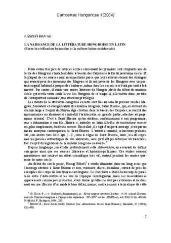 Havas, László (2004) La naissance de la littérature hongroise en latin (Entre la civilisation byzantine et la culture latine occidentale). CAMOENAE HUNGARICAE, 1. pp. 7-50. ISSN 1786-5484