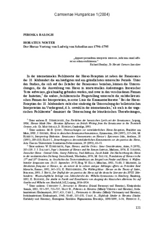 Balogh, Piroska (2004) Horatius noster. Der Horaz-Vortrag von Ludwig von Schedius aus 1794–1795. CAMOENAE HUNGARICAE, 1. pp. 121-134. ISSN 1786-5484