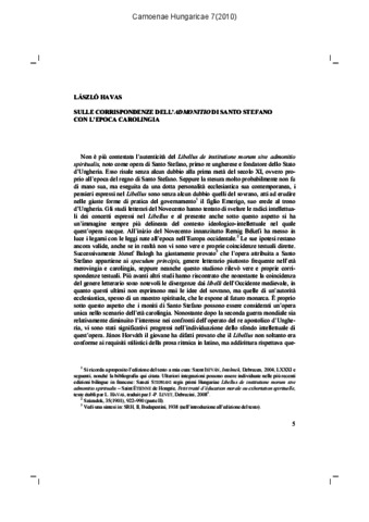 Havas, László (2010) Sulle corrispondenze dell'Admonitio di Santo Stefano con l'epoca carolingia. CAMOENAE HUNGARICAE, 7. pp. 5-12. ISSN 1786-5484