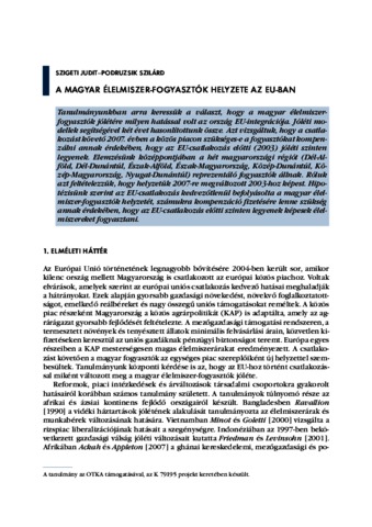 Szigeti, Judit and Podruzsik, Szilárd (2011) A magyar élelmiszer-fogyasztók helyzete az EU-ban. KÖZ-GAZDASÁG, 6 (1). pp. 85-91. ISSN 1788-0696