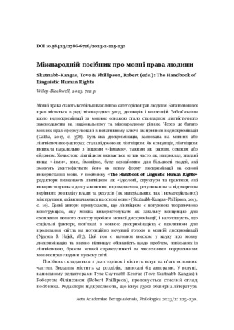 Skutnabb-Kangas, Tove & Phillipson, Robert (eds.): The Handbook of Linguistic Human Rights. Wiley-Blackwell, 2023. 712 p.