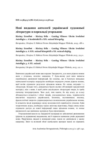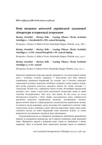 Pevse, Andreya and Libak, Natalka (2023) Нові видання антології української художньої літератури в перекладі угорською. ACTA ACADEMIAE BEREGSASIENSIS, PHILOLOGICA, 2 (2). pp. 238-242. ISSN 27866718