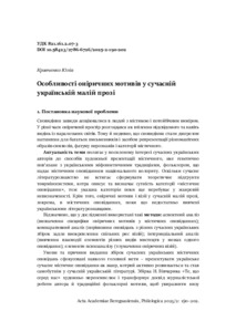 У статті досліджено специфіку репрезентації сновидінь і марень у містичному просторі малої прозової жанрової форми. Проаналізовано сюжетний зв’язок оніричних мотивів з ключовими подіями оповідань, а також із психоемоційним станом персонажів. Визначено, що мотив сновидінь здебільшого розглядається в контексті психоаналізу, пов’язується із вираженням підсвідомого або ж навіть несвідомого людини. Так, візії в літературі можуть відображати внутрішній стан письменника, базуватися на його справжніх сновидіннях. Встановлено, що ще з доби романтизму сон у літературі втілював поєднання свідомого й несвідомого, а також відігравав важливу роль у готичній і містичній художній літературі задля поглиблення сюжету й тем, які в ньому піднімаються. Зосереджено увагу на особливостях репрезентації оніричних мотивів у сучасних українських містичних оповіданнях на матеріалі колективних збірок «Потайсвіт. Інакші» і «Українська містика» та збірки Н. Вівчарика «Те, що серед нас». Встановлено, що сон у містичних оповіданнях слугує засобом навіювання читачеві особливого настрою для сприйняття подій, котрі виходять за межі реальності. Визначено, що в містичних оповіданнях сни переважно насичені символізмом і алюзіями задля поглиблення і розширення надреальності. Крім того, вони виступають маркером божевілля головних персонажів, їхнього нестабільного психоемоційного стану. Встановлено, що в містичному оповіданні сновидіння перетворюється на окремий своєрідний простір, де відбувається злиття реального й нереального, земного й потойбічного. Оніричні мотиви часто пов’язуються з міфопоетичними образами, котрі належать одночасно земному світу й світу потойбічного. Також сновидіння виступають віщуванням і попередженням про прийдешні події для персонажів, накладаються на реальність, підкреслюючи поступове нарощування напруги в оповіді. Проаналізовані оніричні мотиви в деяких оповіданнях виступають для відображення художньої реальності, акцентуації уваги на її багатовимірності. Досліджено, що мотив сновидінь у містичних оповіданнях тісно пов’язаний з репрезентацією духовних практик, темами загробного життя, потойбічної помсти і реінкарнації. | The article examines the specifics of representing dreams and visions in the mystical space of the short prose genre. It analyses the plot-related connection of oneiric motifs with key events in short stories, as well as with the characters’ psycho-emotional state. It is established that the dream motif is most often considered in the context of psychoanalysis and is associated with the expression of the subconscious or even the unconscious of a person. Thus, visions in literature can reflect the writer’s inner state and may be based on his or her actual dreams. Since the Romantic era, the dream in literature has embodied the interplay of the conscious and the unconscious and has also played an important role in Gothic and mystical fiction, deepening both the plot and the themes it addresses. The study focuses on the peculiarities of representing oneiric motifs in contemporary Ukrainian mystical short stories, using as material the collective anthologies “Потайсвіт. Інакші” [The Underworld. The Others] and “Українська містика” [Ukrainian Mysticism], as well as N. Vivcharyk’s collection “Те, що серед нас” [That which is Among Us]. It has been found that the dream in mystical short stories serves as a means of evoking in the reader a particular mood for perceiving events that go beyond the bounds of reality. In mystical short stories, dreams are predominantly imbued with symbolism and allusion in order to deepen and expand the supernatural dimension. In addition, they act as markers of the protagonists’ madness and unstable psycho-emotional state. In the mystical short story, the dream becomes a distinctive space where the real and the unreal, the earthly and the otherworldly, merge. Oneiric motifs are often linked to mythopoetic images that belong simultaneously to the earthly realm and to the world beyond. Dreams also serve as omens and warnings of forthcoming events for the characters, overlapping with reality a