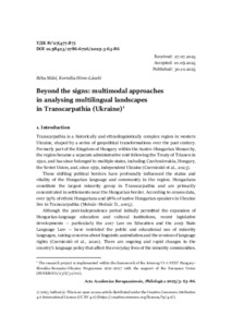 Máté, Réka and Hires-László, Kornélia (2025) Beyond the signs: multimodal approaches in analysing multilingual landscapes in Transcarpathia (Ukraine) = A jeleken túl: multimodális megközelítések a kárpátaljai többnyelvű nyelvi tájkép elemzésében. ACTA ACADEMIAE BEREGSASIENSIS, PHILOLOGICA, 4 (3). pp. 63-86. ISSN 27866718