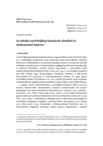 A jelen tanulmány célja, hogy összefoglalja az iskolai nyelvitájkép-kutatások nemzetközi, magyarországi és határon túli szakirodalmát, ezáltal átfogó elméleti és módszertani keretet nyújtson a témában érdekelt kutatóknak. Erre azért van szükség, mert a schoolscape-elemzések meglehetősen új kutatási területnek számítanak, és az utóbbi néhány évben egyre nagyobb érdeklődésre tettek szert, különösen a határon túli fiatal magyar kutatók körében, akik szak- és diplomadolgozatok formájában vizsgálták a saját régiójuk magyar tannyelvű iskoláinak nyelvi tájképét. Fontos, hogy tisztában legyünk azokkal a kutatási irányvonalakkal és trendekkel, amelyek a nemzetközi és a hazai iskolai nyelvitájkép-kutatásokat jellemzik. A világ számos országában végeztek már schoolscape-kutatást, főképp a két- és többnyelvű régiókban, mint például Finnország svédek által lakott részein, Indiában, Észtországban, a Fülöp-szigeteken, Baszkföldön, az Amerikai Egyesült Államokban. Egyes kutatások a kisebbségi és regionális nyelvek revitalizációjával foglalkoznak, míg mások az iskolai nyelvhasználat mögött meghúzódó rejtett tanterveket keresik. Magyarországon 2013-tól, főleg Szabó Tamás Péternek köszönhetően került a köztudatba az iskolai nyelvitájkép-elemzés önálló kutatási területként. Sokan egynyelvűnek gondolják a magyarországi iskolákat, viszont ez nem teljesen igaz, hiszen minden iskolában tanulnak idegen nyelveket. Ezért a legtöbb anyaországi schoolscape-kutatás pedagógiai célú és a nyelvoktatás rejtett tantervével, a standard nyelvváltozat és a nyelvjárások megjelenésével, vagy az idegen nyelvek oktatásával foglalkozik. Az egyetlen kivételt a nemzetiségi iskolák jelentik, ahol vizsgálható a nemzetiségi nyelvek szerepe is az iskolák nyilvános tereiben. A határon túli magyar iskolák nyelvi tájképének kutatása nem pedagógiai, hanem nyelvpolitikai irányultságú, mivel a kutatók a magyar kisebbségi nyelv és a környező országok államnyelveinek szimbolikus jelentőségét hasonlítják össze az iskolákon belül és kívül. Ez általában a hivatalos (fentről lefelé irányuló) és a nem hivatalos (alulról felfelé irányuló) szférákhoz tartozó nyelvitájkép-elemek nyelvészeti elemzésével és nyelvi jellemzőinek vizsgálatával valósul meg. A határon túli térségek közül elsősorban az erdélyi, azon belül is a székelyföldi magyar iskolák nyelvi tájképe került az elmúlt évtizedben feltérképezésre, míg a kárpátaljai és felvidéki magyar oktatási intézmények nyelvi tájképének kutatása még viszonylag gyerekcipőben jár. Ahogy arra a jelen összefoglaló is rávilágít, az iskolai nyelvi tájképek vizsgálata kiemelt jelentőséggel bír a nemzeti kisebbségek megmaradását segítő oktatás- és nyelvpolitikai programok tervezésében. Remélhetőleg a bemutatott kutatási irányvonalak és elemzési módszerek segítenek majd abban, hogy a határon túli magyar kisebbségek oktatási intézményeinek feltérképezése és a nyelvi tájképben bekövetkező változások nyomon követése tovább folytatódjon. | The aim of the present study is to summarize the scientific literature on schoolscape research from international, Hungarian and cross-border perspectives, thereby providing a comprehensive theoretical and methodological framework for researchers interested in the topic. This is necessary because schoolscape analysis is a fairly new research area which has gained increasing interest in the last few years, especially among young Hungarian researchers from the neighbouring regions of Hungary who examined the linguistic landscape of Hungarian-medium schools in their own regions within their bachelor’s or master’s theses. Schoolscape research has been conducted in many countries around the world, mainly in bilingual and multilingual regions, such as India, Estonia, the Philippines, the Basque Country, the United States of America, the Swedish-populated parts of Finland, and so on. Some research dealt with the revitalization of minority and regional languages, while others looked for hidden curricula behind language use in schools. Since 2013, schoolscape analysis has become an independent research field in Hungary, mainly thanks to the work of Tamás Péter Szabó. Many people think of Hungarian schools as completely monolingual, but this is not entirely true, since foreign languages are taught in all schools. Therefore, most schoolscape research in the mother country has a pedagogical purpose and deals with the hidden curriculum of language teaching, the emergence of standard language varieties and regional dialects, or the teaching of foreign languages. The only exceptions are nationality schools where the role of minority languages in the public spaces of schools can also be examined. Research on the linguistic landscape of Hungarian schools across the border is not pedagogical, but rather language policy-oriented, as it compares the symbolic significance of Hungarian as a minority language and the state languages of neighbouring countries inside and outside schools. This is usually achieved by the analysis of linguistic landscape elements belonging to the formal (top-down) and informal (bottom-up) spheres and by examining their linguistic characteristics. Among the cross-border regions, the linguistic landscape of Hungarian schools in Transylvania, especially in Szeklerland, has been mapped in the past decade, while research on the linguistic landscape of Hungarian educational institutions in Transcarpathia and Southern Slovakia is still in its infancy. As this summary highlights, the examination of schoolscapes is of paramount importance in the design of educational and language policy programs that support the survival of national minorities. Hopefully, the described research guid