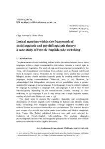 This article explores the phenomenon of French–English code-switching within the framework of psycholinguistic theory, offering a comprehensive analysis of its cognitive, linguistic, and sociolinguistic dimensions. Code-switching, defined as the alternation between two or more languages within a single communicative act, is examined through foundational theories from scholars like U. Weinreich, S. Poplack, J. J. Gumperz, and K. de Bot. The study delves into psycholinguistic models, such as Levelt’s speech production framework, which outlines stages like conceptual preparation, grammatical encoding, phonological encoding, and articulation. De Bot’s bilingual lexicon model suggests that lexicons of different languages form interconnected subsystems within a unified framework, enabling seamless code-switching through lemma selection and word-form retrieval. The concept of the matrix language, introduced by F. Grosjean, highlights how bilingual speakers operate in monolingual or bilingual modes, with co-activation of languages facilitating dynamic linguistic transitions. Linguistically, the article addresses constraints like S. Poplack’s equivalence constraint, which ensures structural compatibility, and J. MacSwan’s minimalist approach, which views code-switching as the merging of lexicons within a unified grammatical system. Challenges to rigid constraints, such as the government principle, reveal the flexibility of bilingual speech, influenced by social and pragmatic factors. French–English code-switching, prevalent in fashion and lifestyle media, exemplifies how French terms like laissez-faire, je ne sais quoi, and rendezvous are integrated into English discourse to evoke sophistication and cultural prestige. These terms often function as borrowings or code-switches, reflecting bilingual competence and cultural signaling. Sociolinguistically, code-switching serves as a marker of identity and prestige, particularly in globalised contexts. The article emphasises the cognitive flexibility of bilinguals, as noted by E. Bialystok, and the role of social context in shaping language choice, as discussed by P. Auer and B. Spolsky. Examples from media texts illustrate how French terms enhance rhetorical expressiveness while adhering to English grammatical norms. The study concludes that French–English code-switching reflects a complex interplay of cognitive processes, linguistic structures, and cultural dynamics, offering insights into bilingual communication and its role in modern discourse. | A tanulmány a francia–angol kódváltás jelenségét vizsgálja, átfogó elemzést nyújtva annak kognitív, nyelvi és szociolingvisztikai dimenzióiról. A kódváltás, amelyet két vagy több nyelv váltakozásaként definiálunk egyetlen kommunikációs aktuson belül, olyan alapvető elméletek alapján kerül bemutatásra, mint U. Weinreich, S. Poplack, J. J. Gumperz és K. de Bot munkái. A kutatás a pszicholingvisztikai modellekbe, például Levelt beszédprodukciós keretébe is betekintést nyújt, amely olyan szakaszokat ír le, mint a fogalmi előkészítés, a grammatikai kódolás, a fonológiai kódolás és az artikuláció. De Bot kétnyelvű lexikonmodellje szerint a különböző nyelvek lexikonjai egyetlen egységes rendszerben egymással összekapcsolt alrendszereket alkotnak, ami lehetővé teszi a zökkenőmentes kódváltást a lemma kiválasztása és a szóalak előhívása révén. F. Grosjean mátrixnyelv-fogalma kiemeli, hogy a kétnyelvű beszélők monolingvális vagy bilingvális üzemmódban működhetnek, és a nyelvek együttes aktiválása elősegíti a dinamikus nyelvi átmeneteket. Nyelvészeti szempontból a cikk olyan koncepciókkal is foglalkozik, mint S. Poplack ekvivalencia-korlátja, amely a szerkezeti kompatibilitást biztosítja, valamint J. MacSwan minimalista megközelítése, amely a kódváltást a lexikonok összeolvadásaként értelmezi egy egységes nyelvtani rendszerben. A kétnyelvű beszéd rugalmasságát társadalmi és pragmatikai tényezők is befolyásolják. A francia–angol kódváltás, amely gyakori a divattal és életstílussal foglalkozó médiában, jól példázza, hogyan épülnek be a francia kifejezések – mint a laissez-faire, je ne sais quoi vagy rendezvous – az angol diskurzusba, hogy kifinomultságot és kulturális presztízst sugalljanak. Ezek a kifejezések gyakran kölcsönszóként vagy kódváltásként funkcionálnak, tükrözve a kétnyelvű kompetenciát és a kulturális hátteret. Szociolingvisztikai szempontból a kódváltás az identitás és a presztízs jelölőjeként szolgál, különösen a globalizált világban. A tanulmány hangsúlyozza a kétnyelvűek kognitív rugalmasságát (E. Bialystok), valamint a társadalmi kontextus szerepét a nyelvválasztásban (P. Auer, B. Spolsky). Médiaszövegekből vett példák szemléltetik, hogyan fokozzák a francia kifejezések a retorikai kifejezőerőt, miközben alkalmazkodnak az angol nyelvtani normákhoz. A szerzők arra a következtetésre jutnak, hogy a francia–angol kódváltás a kognitív folyamatok, a nyelvi struktúrák és a kulturális dinamikák összetett kölcsönhatását tükrözi, betekintést nyújtva a kétnyelvű kommunikációba és annak szerepébe a modern diskurzusban.
