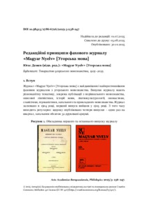 Gazdag, Vilmos and Bárány, Erzsébet (2025) Редакційні принципи фахового журналу «Magyar Nyelv» [Угорська мова]. ACTA ACADEMIAE BEREGSASIENSIS, PHILOLOGICA, 4 (3). pp. 238-247. ISSN 27866718