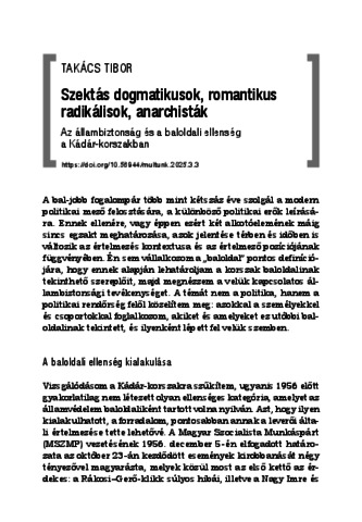 Takács, Tibor (2025) Szektás dogmatikusok, romantikus radikálisok, anarchisták : Az állambiztonság és a baloldali ellenség a Kádár-korszakban. MÚLTUNK - POLITIKATÖRTÉNETI FOLYÓIRAT, 70 (3). pp. 34-63. ISSN 0864-960X