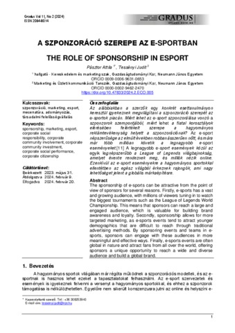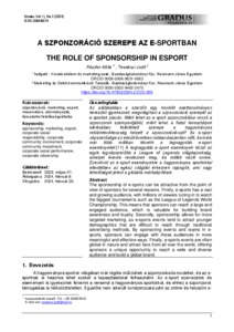 Pásztor, Attila and Tessényi, Judit (2024) A szponzoráció szerepe az e-sportban = The role of sponsorship in esport. GRADUS, 11 (2). ISSN 2064-8014