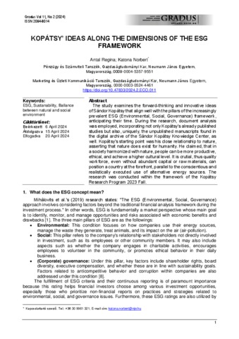 Regina, Antal and Katona, Norbert István (2024) Kopátsy’ ideas along the dimensions of the ESG framework. GRADUS, 11 (2). ISSN 2064-8014