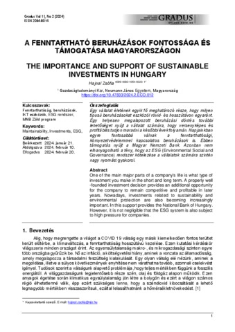 Hajnal, Zsófia (2024) A fenntartható beruházások fontossága és támogatása Magyarországon = The importance and support of sustainable investments in Hungary. GRADUS, 11 (2). ISSN 2064-8014