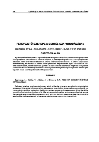 Egerszegi, István and Páble, Tamás and Rátky, József and Brüssow, Klaus-Peter (2014) Petevezető szerepe a sertés szaporodásában. ÁLLATTENYÉSZTÉS ÉS TAKARMÁNYOZÁS, 63 (3). pp. 226-238. ISSN 0230-1814