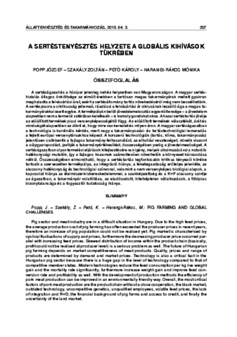 Popp, József and Szakály, Zoltán and Pető, Károly and Harangi-Rákos, Mónika (2015) A sertéstenyésztés helyzete a globális kihívások tükrében. ÁLLATTENYÉSZTÉS ÉS TAKARMÁNYOZÁS, 64 (3). pp. 207-225. ISSN 0230-1814