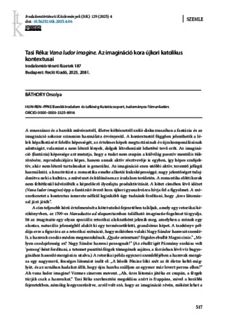 Báthory, Orsolya (2025) Tasi Réka: Vana ludor imagine. Az imagináció kora újkori katolikus kontextusai. IRODALOMTÖRTÉNETI KÖZLEMÉNYEK, 129 (4). pp. 517-521. ISSN 0021-1486