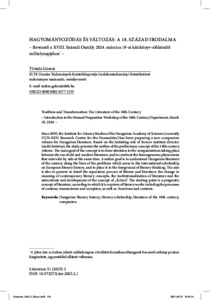 Tüskés, Gábor (2025) Hagyományozódás és változás: A 18. század irodalma. Bevezető a XVIII. Századi Osztály 2024. március 19-ei kézikönyv-előkészítő műhelynapjához. LITERATURA, 51 (2). pp. 126-132. ISSN 0133-2368