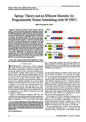 Vass, Balázs (2025) Spring: Theory and an Efficient Heuristic for Programmable Packet Scheduling with SP-PIFO. INFOCOMMUNICATIONS JOURNAL, 17 (3). pp. 2-10. ISSN 2061-2079