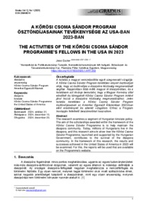 Jeso, Eszter (2025) A Kőrösi Csoma Sándor program ösztöndíjasainak tevékenysége az USA-ban 2023-ban = The activities of the Kőrösi Csoma Sándor Programme’s fellows in the USA in 2023. GRADUS, 12 (1). ISSN 2064-8014