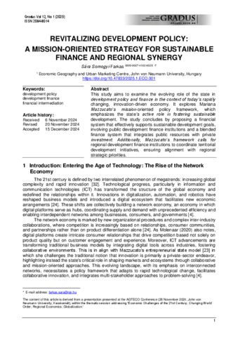 Farkas, Sára (2025) Revitalizing development policy : a mission-oriented strategy for sustainable finance and regional synergy. GRADUS, 12 (1). ISSN 2064-8014