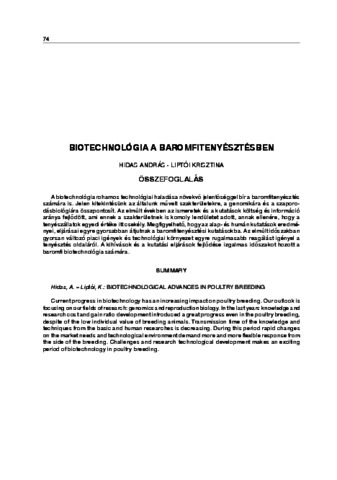 A biotechnológia rohamos technológiai haladása növekvő jelentőséggel bír a baromfitenyésztés számára is. Jelen kitekintésünk az általunk művelt szakterületekre, a genomikára és a szaporodásbiológiára összpontosít. Az elmúlt években az ismeretek és a kutatások költség és információ aránya fejlődött, ami ennek a szakterületnek is komoly lendületet adott, annak ellenére, hogy a tenyészállatok egyedi értéke itt csekély. Megfigyelhető, hogy az alap- és humán kutatások eredményei, eljárásai egyre gyorsabban átjutnak a baromfitenyésztési kutatásokba. Az elmúlt időszakban gyorsan változó piaci igények és technológiai környezet egyre rugalmasabb reagálást igényel a tenyésztés oldaláról. A kihívások és a kutatási eljárások fejlődése izgalmas időszakot hozott a baromfi biotechnológia számára.