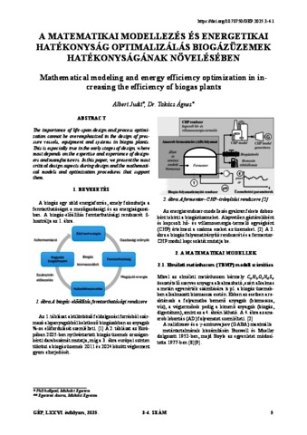 Albert, Judit and Takács, Ágnes (2025) A matematikai modellezés és energetikai hatékonyság optimalizálás biogázüzemek hatékonyságának növelésében = Mathematical modeling and energy efficiency optimization in increasing the efficiency of biogas plants. GÉP, 76 (3-4). pp. 5-8. ISSN 0016-8572