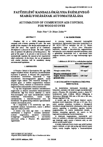 Fodor, Péter and Bihari, Zoltán (2025) Fatüzelésű kandallókályha égéslevegő szabályozásának automatizálása = Automation of combustion air control for wood stoves. GÉP, 76 (3-4). pp. 43-46. ISSN 0016-8572