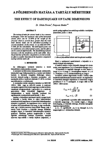 Orbán, Ferenc and Fenyvesi, Sándor (2025) A földrengés hatása a tartály méreteire. GÉP, 76 (3-4). pp. 88-91. ISSN 0016-8572