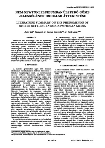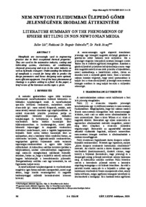 Suller, Lili and Vadászné Bognár, Gabriella and Faitli, József (2025) Nem-newtoni fluidumban ülepedő gömb jelenségének irodalmi áttekintése. GÉP, 76 (3-4). pp. 96-99. ISSN 0016-8572