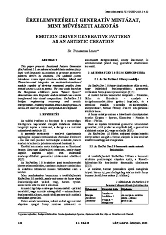 Trautmann, Laura (2025) Érzelemvezérelt generatív mintázat, mint művészeti alkotás = Emotion-driven generative pattern as a work of art. GÉP, 76 (3-4). pp. 132-135. ISSN 0016-8572