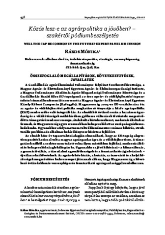 Rákos, Mónika (2025) Közös lesz-e az agrárpolitika a jövőben? – szakértői pódiumbeszélgetés = Will the CAP be Common in the Future? Expert Panel Discussion. GAZDÁLKODÁS, 69 (5). pp. 438-444. ISSN 0046-5518