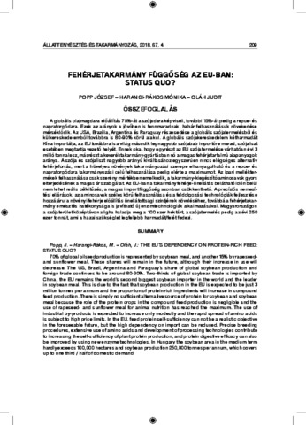 Popp, József and Harangi-Rákos, Mónika and Oláh, Judit (2018) Fehérjetakarmány függőség az eu-ban: Status Quo? ÁLLATTENYÉSZTÉS ÉS TAKARMÁNYOZÁS, 67 (4). pp. 209-224. ISSN 0230-1814