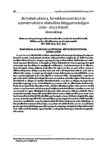 Tóth, Péter (2025) Birtokstruktúra, birtokkoncentráció és üzemstruktúra alakulása Magyarországon 2010-2023 között = Land Use Structure, Land Concentration, Farm Structure in Hungary between 2010 and 2023. GAZDÁLKODÁS, 69 (5). pp. 382-399. ISSN 0046-5518