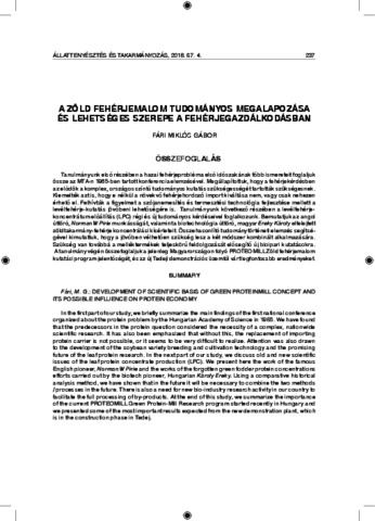 Fári, Miklós Gábor (2018) A zöld fehérjemalom tudományos megalapozása és lehetséges szerepe a fehérjegazdálkodásban. ÁLLATTENYÉSZTÉS ÉS TAKARMÁNYOZÁS, 67 (4). pp. 237-253. ISSN 0230-1814