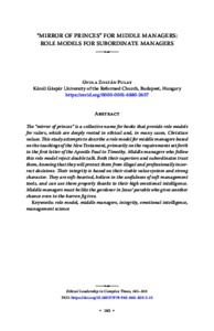 The “mirror of princes” is a collective name for books that provide role models for rulers, which are deeply rooted in ethical and, in many cases, Christian values. This study attempts to describe a role model for middle managers based on the teachings of the New Testament, primarily on the requirements set forth in the first letter of the Apostle Paul to Timothy. Middle managers who follow this role model reject double talk. Both their superiors and subordinates trust them, knowing that they will protect them from illegal and professionally incorrect decisions. Their integrity is based on their stable value system and strong character. They are soft-hearted, believe in the usefulness of soft management tools, and can use them properly thanks to their high emotional intelligence. Middle managers must be like the gardener in Jesus’ parable who gives another chance even to the barren fig tree.