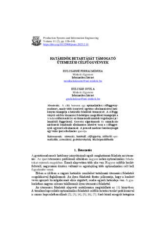 Kulcsárné Forrai, Mónika and Kulcsár, Gyula (2023) Határidők betartását támogató ütemezési célfüggvények. PRODUCTION SYSTEMS AND INFORMATION ENGINEERING, 11 (2). pp. 138-148. ISSN 1785-1270