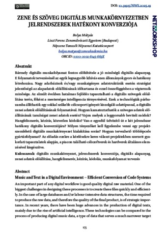 Bármely digitális munkafolyamat fontos előfeltétele a jó minőségű digitális alapanyag. E folyamatok tervezésénél az egyik legnagyobb kihívás ezen állományok gyors és hatékony létrehozása. Nagy adatbázisok és/vagy munkaigényes adatstruktúrák esetén stratégiai jelentőségű az alapadatok előállításának időtartama és ezzel összefüggésben a végtermék minősége. Az elmúlt években hatalmas fejlődés tapasztalható a digitális szövegek előállítása terén, főként a mesterséges intelligencia térnyerésével. Ezek a technológiák párhuzamba állíthatók egy sokkal szűkebb célcsoport igényeit kiszolgáló adattípussal, a digitális zenei adatok előállításának folyamatával. Hogyan kamatoztathatók a szöveges adatok előállításának tanulságai zenei adatok esetén? Vajon melyek a leggyorsabb beviteli módok? Hangfelismerés, kézírás, közvetlen kódolás? Van-e egyedül üdvözítő út e két jelrendszer hatékony digitális konverziójára? Milyen tényezőket kell figyelembe venni egy projektszemléletű digitális munkakörnyezet kialakítása során? Hogyan tervezhető többlépcsős gyártásfolyamat? Az előadás ezekre a kérdésekre keres választ projektekben szerzett gyakorlati tapasztalatok alapján, a piacon található célszoftverek és hardverek általános elemzésével kiegészítve. | An important part of any digital workflow is good quality digital raw material. One of the biggest challenges in designing these processes is to create these files quickly and efficiently. In the case of large databases and/or labour-intensive data structures, the time required to produce the raw data, and therefore the quality of the final product, is of strategic importance. In recent years, there have been huge advances in the production of digital texts, mainly due to the rise of artificial intelligence. These technologies can be compared to the process of producing digital music data, a type of data that serves a much narrower target group. How can the lessons learned from text data production be applied to music data? What are the fastest methods of input? Voice recognition, handwriting, direct encoding? Is there a single way to digitally convert these two code systems efficiently? What factors should be considered when designing a project-oriented digital workspace? How can a multi-stage production process be designed? The presentation will answer these questions based on practical experience in projects, complemented by a general analysis of the target software and hardware.