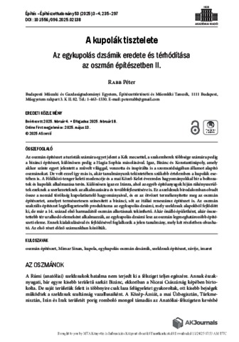 Rabb, Péter (2025) A kupolák tisztelete : Az egykupolás dzsámik eredete és térhódítása az oszmán építészetben II. = Respect for Domes : The Origin and Spread of the Single-Domed Mosques in the Ottoman Architecture II. ÉPÍTÉS-ÉPÍTÉSZETTUDOMÁNY, 53 (3-4). pp. 235-297. ISSN 0013-9661