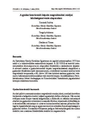 Simándi, Szilvia and Tengely, Adrienn and Oszlánczi, Tímea (2024) A gyakorlatorientált képzés megvalósulási módjai közösségszervezés alapszakon. PAIDEIA, 14 (2). pp. 113-123. ISSN 26311666